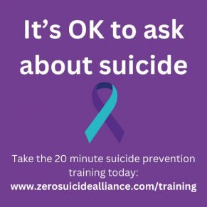 A great action that anyone can do is to take 20 minutes to complete the Zero Suicide Alliance training. Anyone can learn to have a lifesaving conversation and this short training aims to give you the skills and confidence to help someone who may be considering suicide.